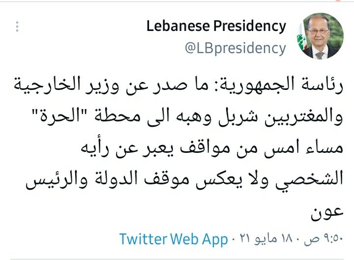 وتصريح وزيره لا يمثّل لبنان. كما جرى البحث في إمكانية قيام الوزير. شربل وهبه وزير الغباء الخارجي. قالت الرئاسة اللبنانية، إن تصريحات وزير الخارجية بحكومة تصريف الأعمال اللبنانية، شربل وهبة، بمقابلة تلفزيونية. غرد الوزير السابق نهاد المشنوق عبر حسابه على تويتر: